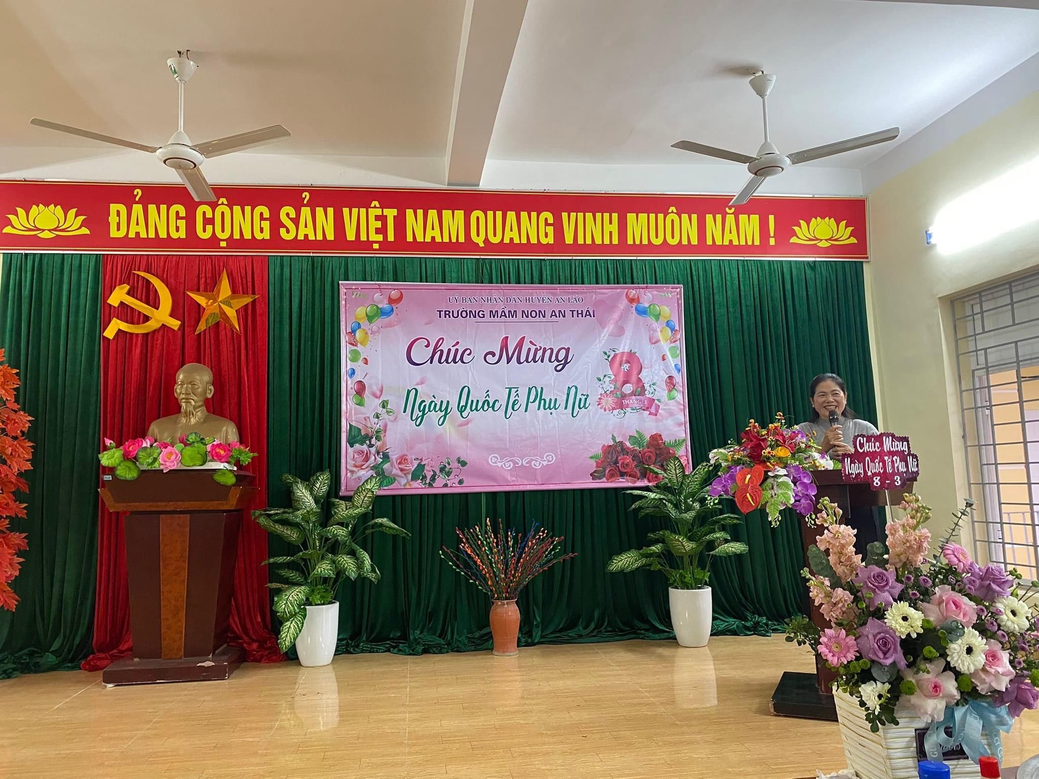 Thực hiện nhiệm vụ năm học 2022 - 2023 và triển khai thực hiện kế hoạch tháng 3, chiều ngày 08/3/2023 trường mầm non An Thái tổ chức Hội thi "Cô nuôi giỏi" và mít tinh kỉ niệm 113 năm ngày Quốc tế phụ nữ 08/3. Thông qua Hội thi đã khích lệ được niềm đam mê, nhiệt huyết, sáng tạo trong công việc của các cô nuôi và chương trình mít tinh kỉ niệm cũng tạo được niềm vui tươi phấn khởi cho những người "phụ nữ hạnh phúc" của Mầm non An Thái./.